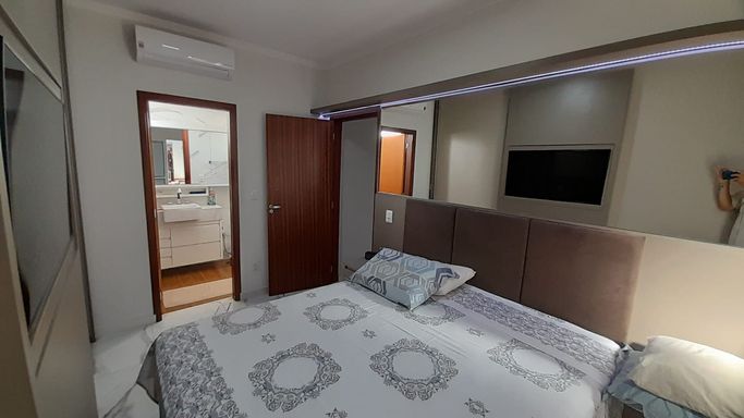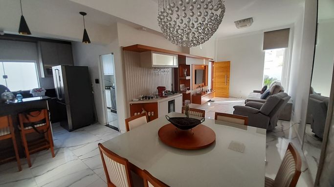 Excelente casa, nova, ótimo acabamento, com 3 dormitórios (1 suite), banheiro social, lavabo, sala de jantar e estar, cozinha, lavanderia, área de lazer, churrasqueira, garagem para 4 carros, ambientes com armários, ar condicionado, bem equipada, com fotovoltáica.