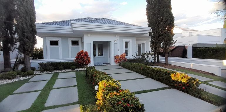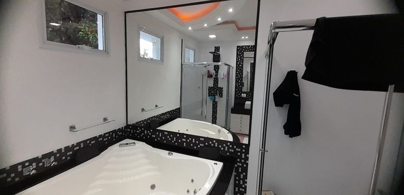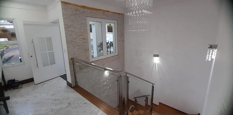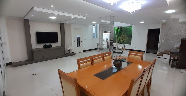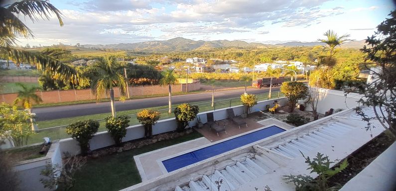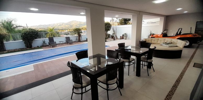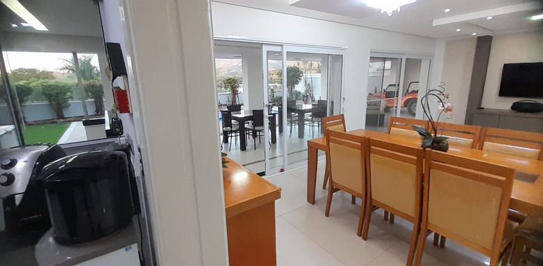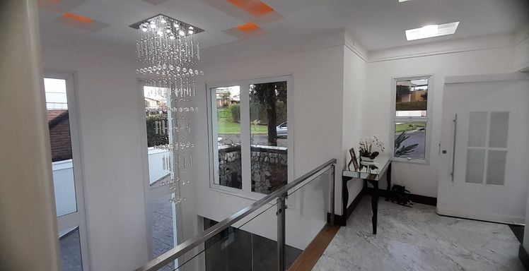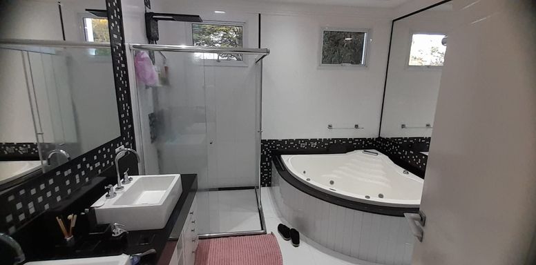 Belíssima casa estilo clássico inglês, com 3 suítes (com closet), uma sala de TV na parte de cima da casa, na parte debaixo, adega, grande salão que engloba sala de jantar, sala de estar, salão de festas, cozinha, lavanderia, bela área externa, com jardim, piscina, ducha, vista para Serra da Mantiqueira, 3 vagas de garagem, depósito, aquecimento central, armários.