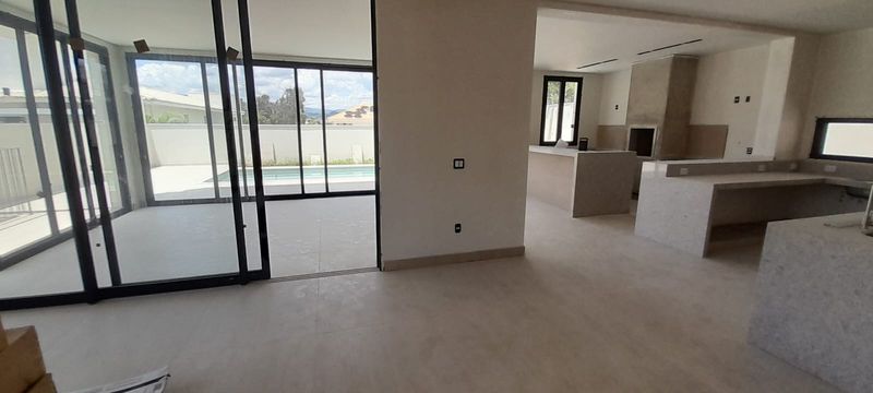 Casa de alto padrão, nova, término de obra, ótima localização, será entregue pronta com 4 dormitórios (4 suites, sendo uma master), sala de estar e jantar, cozinha conjugada, área gourmet, lavabo, lavanderia, piscina, elevador, vagas p 4 carros, armários.